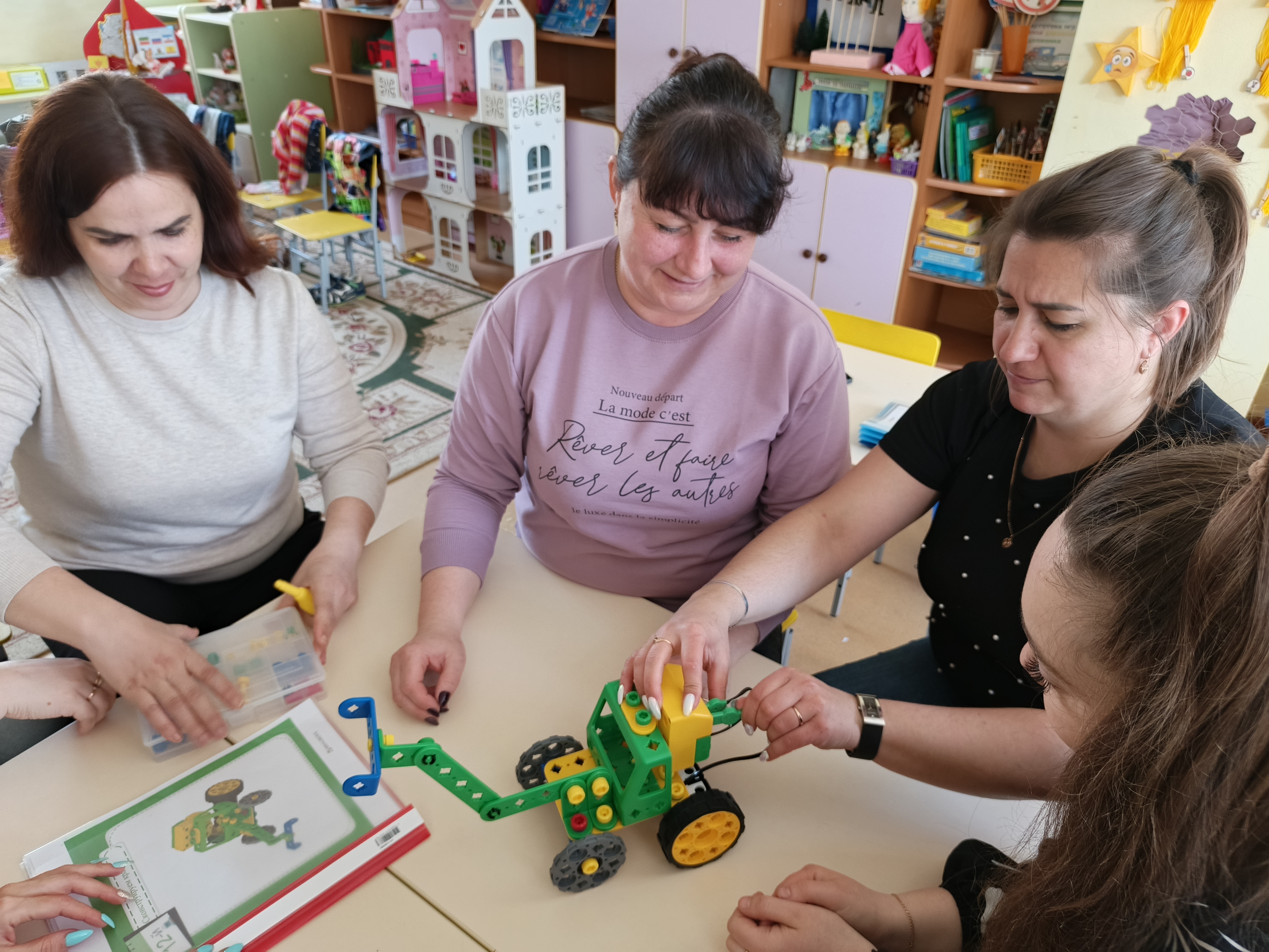 - в ДОУ продолжает работать система организации консультативной методической поддержки для повышения компетентности педагогов в области конструирования и робототехники. (проводятся различные методические мероприятия на которых воспитатели познакомились с робототехническим набором Matatalab Tale-Bot и инструкциями по сборке, учились собирать простые конструкции по образцу, познакомились с правилами программирования в компьютерной среде, познакомились с различными видами конструкторов UARO, с основными приемами робототехники, используемыми в образовательном процессе с детьми);